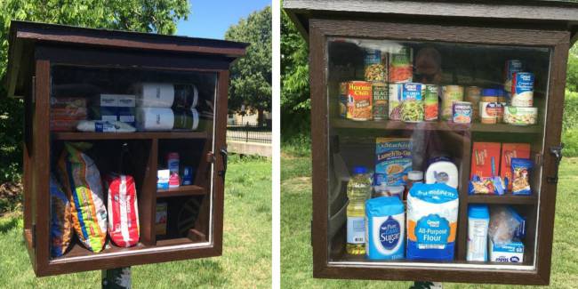 বলছিলাম ফায়েটেভিলের গুড শেফার্ড লুথারিয়ান চার্চের ঠিক পাশেই অবস্থিত জেসিকা ম্যাকলার্ডের হাতে গড়ে ওঠা ছোট্ট পেনট্রির কথা। বেশ কিছুদিন আগের কথা। সেসময় জেসিকার চোখে পড়ে ফায়েটেভিলের নতুন কিছু গ্রন্থাগার। যেগুলো থেকে মানুষেরা তাদের ইচ্ছেমতন বিনামূল্যে বই নিয়ে যেতে পারতো। বেশ সাফল্য লাভ করে বিষয়টি জেসিকাদের ওখানে। সেই থেকে জেসিকার মাথায় ঘুরতে থাকে অন্যরকম একটি চিন্তা। বই নয়। বইয়ের বদলে খাবার আর নানারকম জিনিসপত্র বিনামূল্যে দেওয়ার কথা চিন্তা করেন তিনি।