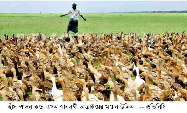 আত্রাইয়ে হাঁস পালন করে এখন স্বাবলম্বী ময়েন উদ্দিন