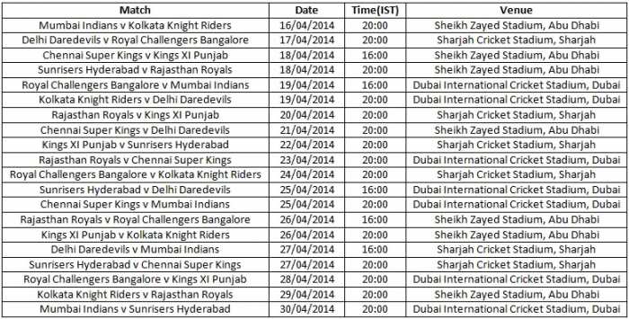 এক নজরে আইপিএল সেভেনের সময়সূচী