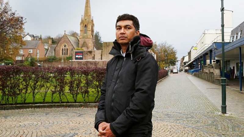 দেশ ছেড়ে প্রবাসে নিজেকে যে জায়গায় আবিস্কার করলেন তিনি তা হলো পশ্চিম স্কটল্যান্ডের পর্বতের উপর একটি হোটেল নাম স্টুয়ার্ট। টানা তিন থেকে চার মাস তাকে এই হোটেলের মেঝে থেকে শুরু করে খাবার পরিবেশন করা, হোটেলের আশেপাশে পরিষ্কার রাখার কাজ করতে হতো। এত কাজ বিনিময়ে মিলতো না পারিশ্রমিক। ভাইসুলভ বন্ধু আরেফিনের দেখা পেত অমবস্যার চাঁদের মতো। বেতন নেয়ার সময় আরেফিনকে হোটেলে আসতে দেখা যেত। প্রবাসে এনে তাকে দিয়ে এমন কাজ করানো কেন হচ্ছে জানতে চাইলে সহসাই রেগে উঠতো আরেফিন। কাজ না করতে চাইলে স্পনসারশিপ বাতিল করে দেশে পাঠিয়ে দেয়ারও হুমকি দেন তিনি। বেতন কবে নাগাদ পাবে জানতে চাইলে বলা হতো যেদিন ভিসার টাকা পুরোপুরি চুকিয়ে যাবে তখনই বেতনের মুখ দেখবে।