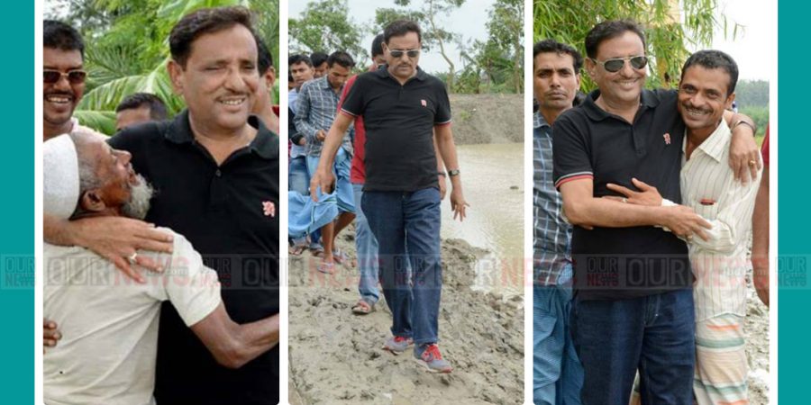 কাঁদা পানি ঠেলে দূর্গত এলাকার মানুষের সাথে বুক মেলালেন ওবায়দুল কাদের