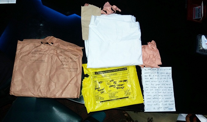 রাজধানীর ধানমণ্ডি এলাকার ঝিগাতলা থেকে রনি নামের এক ব্যক্তি এ পার্সেলটি পাঠিয়েছেন। সেখানে প্রেরকের ১২ ডিজিটির গ্রামীণফোনের একটি মোবাইল নম্বর দেওয়া আছে। নম্বরটি হলো : ০১৭১২৪৪৭৯৮৯২।