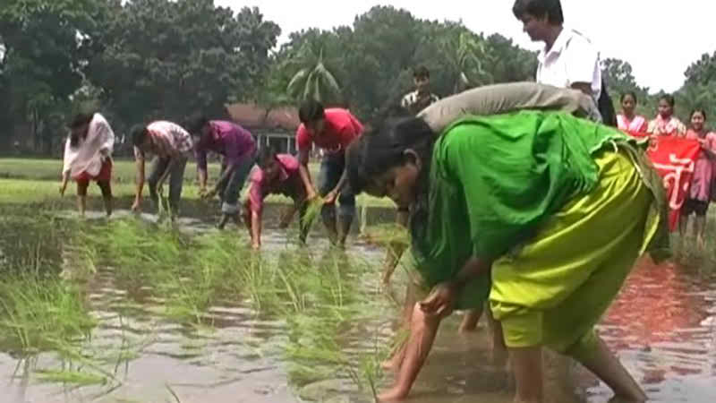 খেলার মাঠে ধানের চারা রোপন করে প্রতিবাদ