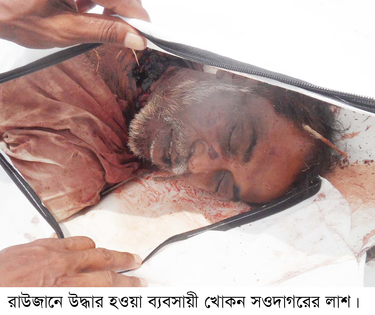 রাউজানের উরকিরচর ইউনিয়নের আবুরখীল গ্রামের ধানি জমি থেকে গলা কাটা অবস্থায় মোহাম্মদ ইলিয়াছ প্রকাশ খোকন সওদাগর (৫৫) নামের এক ব্যাবসায়ীর লাশ উদ্ধার করেছে রাউজান থানা পুলিশ। সে চান্দঁগাও থানার পশ্চিম মোহরা গোলাফের দোখান এলাকার মৃত ইসমাইলের পুত্র বলে জানা গেছে। নিহত খোকন সওদাগরের হাটহাজারীর দক্ষিণ কুয়াইশ গুলগুলা আমতলীতে আলিফা স্টোর নামের একটি মুদি দোকান রয়েছে। বিবাহিত জীবনে সে দুই পুত্র সন্তানের জনক।