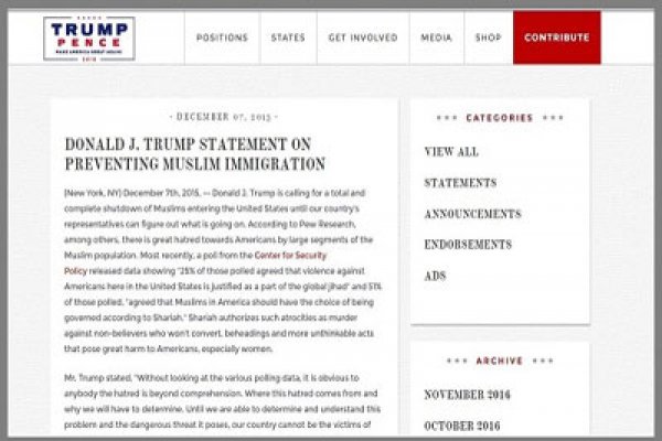 মুসলিমদের আমেরিকা থেকে প্রথমে সাময়িক এবং প্রয়োজনে পরে স্থায়ীভাবে নিষিদ্ধ করে দেয়া বিবৃতিটির পেজ ওয়েবসাইটে ৮ নভেম্বর মার্কিন নির্বাচন অনুষ্ঠানের দিনও ছিল। কিন্তু সেদিন রাতেই পেজটি সরিয়ে তার জায়গায় আর্থিক সাহায্যের নতুন লিংকটি বসিয়ে দেয়া হয়।