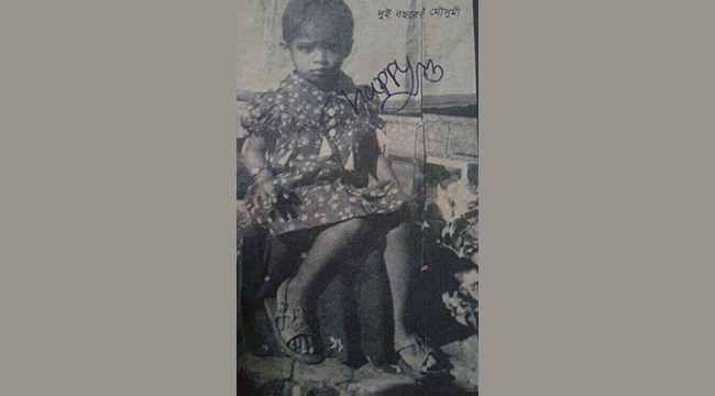 স্কার্ট পরা, কিছু একটার উপর বসে রয়েছেন। ডান হাতে ছোট্ট একটি ঘড়ি। আর অপলক দৃষ্টিতে ক্যামেরার দিকে তাকিয়ে আছেন শ্যামলবরণ মেয়েটি। যার চোখে দেখে মনে হয় যেখানে লুকিয়ে রয়েছে অব্যক্ত অনেক কথা। পাঠক একটু খেয়াল করে দেখেন তো তাকে কি চেনা যায়? ভাবছেন তিনি কে? তার সাথেই বা এখনকার কোন জনপ্রিয় তারকা অভিনেত্রীর চেহারার মিল খুঁজে পাওয়া যায়?