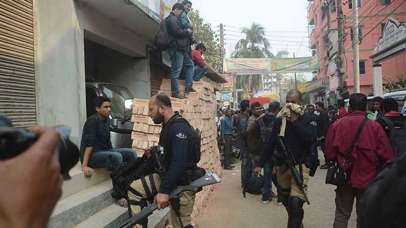এর আগে শুক্রবার মধ্যরাত থেকে রাজধানীর আশকোনায় জঙ্গি আস্তানা সন্দেহে ‘সূর্য ভিলা’ নামের তিনতলা একটি বাড়ি ঘিরে রাখে আইনশৃংখলা রক্ষাকারী বাহিনী।