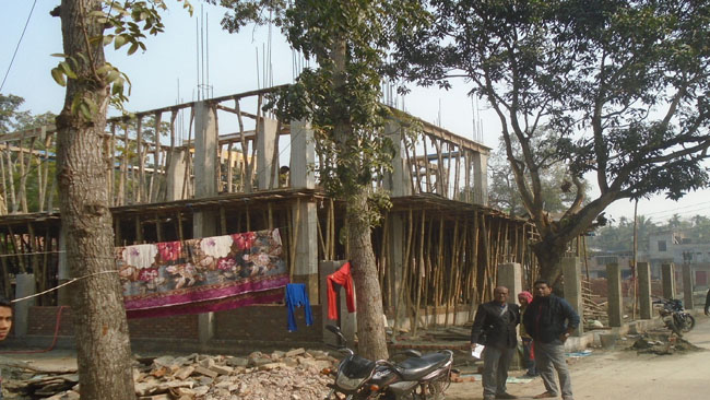 বুধবার সকালে সরেজমিনে গিয়ে দেখা যায়, ইতিমধ্যে বাড়ির মূল কাঠামোর কাজ শেষের পথে। ছাদ ঢালাইয়ের কাঠামো তৈরির কাজ চলছে।