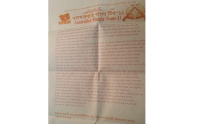 বৃহস্পতিবার বেলা সাড়ে ১১ টার দিকে ডাক যোগে এই চিঠি নাটোর প্রেসক্লাবে পৌঁছে দেয় জেলা ডাক বিভাগের পিয়ন। পরে দুপুর ১২টার দিকে নাটোর প্রেসক্লাবের সাধারন সম্পাদক দুলাল সরকার এই চিঠি খোলেন। তারপরই জানতে পারা যায় আনসারুল্লাহ বাংলা টিমের এই হুমকির বিষয়টি।