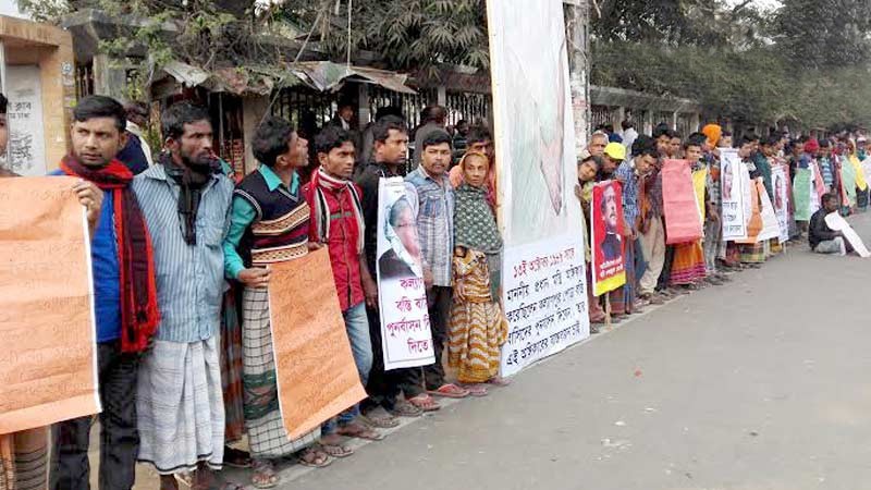 শনিবার জাতীয় প্রেসক্লাবের সামনে অবস্থান নিয়ে প্রধানমন্ত্রীর উদ্দেশে তারা বলেন, ‘বস্তিবাসীদের উচ্ছেদের সকল ষড়যন্ত্র রুখে দিয়ে গরিব দুঃখী মানুষের স্থায়ী পুনর্বাসন করে মাথা গোজার ঠাঁই করে দিন। আপনি যে দেশের প্রধানমন্ত্রী, আমরা সে দেশেরই নাগরিক।’