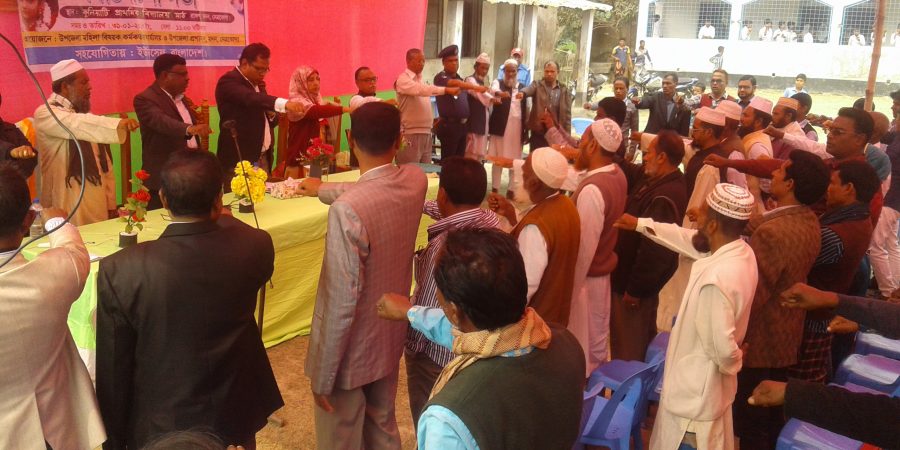 মদন (নেত্রকোণা) প্রতিনিধি : নেত্রকোনার মদনে তিন শতাধিক লোক বাল্য বিয়ে বন্ধের অঙ্গীকার করলেন। মঙ্গলবার মদন উপজেলার মদন ইউনিয়নের কুলিয়াটি সরকারি প্রাথমিক বিদ্যালয়ের মাঠে জনপ্রতিনিধি,শিক্ষক- শিক্ষার্থী,মসজিদের ইমাম,বিবাহ রেজিষ্টার ও গণ্যমান্য ব্যাক্তিবর্গ সহ তিন শতাধিক লোক এক সাথে শপথ বাক্য পাঠ করে বাল্য বিয়ে বন্ধের অঙ্গীকার করেন।