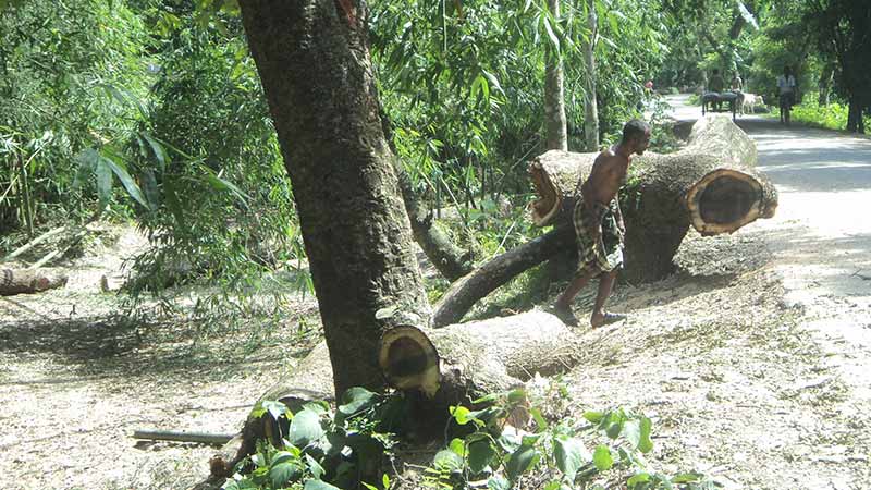 সূত্রমতে, কুড়িগ্রাম জেলা পরিষদের টেন্ডারে অংশ নিয়ে ঠিকাদার আলহাজ মনসুর আলী নাগেশ্বরী-ফুলবাড়ী সড়কের বিভিন্ন জাতের মরা ১৭০টি গাছ কাটার কার্যাদেশ পান। গত ২০ মে গাছ কাটা শুরু করেন ঠিকাদারের লোকজন। এক পর্যায়ে শনিবার বিকেলে ফুলবাড়ী- নাগেশ্বরী সড়কের মরা চিহ্নিত গাছ বাদে জীবিত প্রায় ৭ লক্ষাধিক টাকার বিভিন্ন প্রজাতির গাছ কেটে ফেলে। এর মধ্যে রয়েছে বড় সাইজের ইউক্যালিপটাস, চারটি রেইনট্রি, কড়াই ও দুটি কাঁঠাল গাছ।