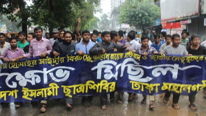 জামায়াত নেতা দেলাওয়ার হোসাইন সাঈদীক ‘আমৃত্যু কারাদণ্ড’ দেয়ার প্রতিবাদে রাজধানীর মহাখালীতে মিছিল করেছে শিবির।