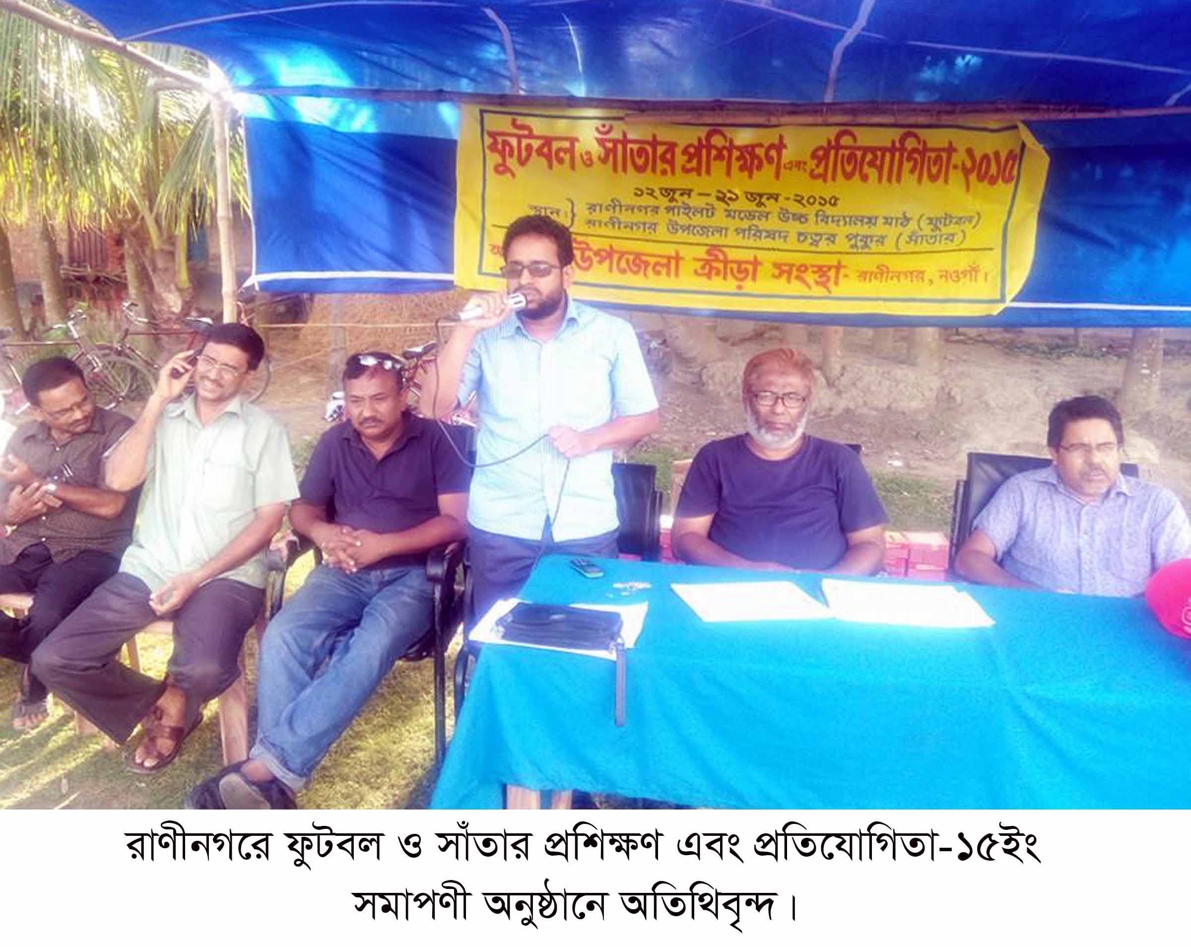 রাণীনগরে সাঁতার ও ফুটবল প্রশিক্ষন শেষে সনদ ও জার্সি বিতরন