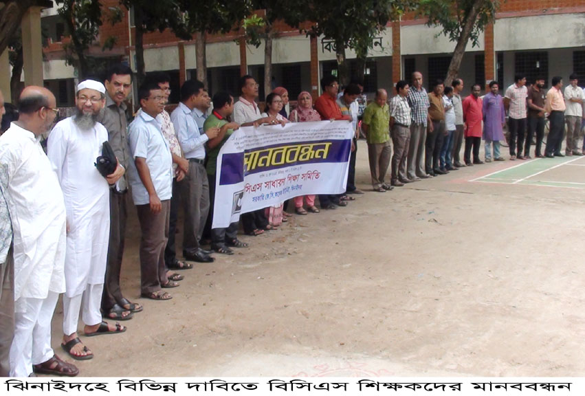 সাত দফা দাবী বাস্তবায়নে ঝিনাইদহে বিসিএস শিক্ষকদের মানববন্ধন