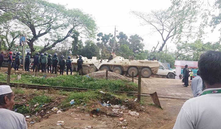 শনিবার ওই এলাকার আশপাশে উৎসুক জনতার প্রবেশে এত বেশি কড়াকড়ি না থাকলেও আজ কঠোর অবস্থানে রয়েছে আইন-শৃঙ্খলা বাহিনী।
