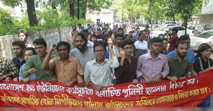সংবাদ সম্মেলন শেষে মধুর ক্যান্টিন থেকে তারা একটি বিক্ষোভ মিছিল বের করে।