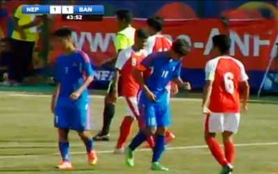 ৯০ মিনিটের খেলা শেষ। স্কোর, বাংলাদেশ ১, নেপাল ১। ইনজুরি টাইম দেওয়া হলো চার মিনিট। সবাই ধরেই নিয়েছিল, ম্যাচটি ড্র হতে যাচ্ছে। কিন্তু ইনজুরি টাইমের শেষ দিকে নেপালের খেলোয়াড় বিশ্বাসকে ফাউল করেন বাংলাদেশের টুটুল। রেফারি টুটুলকে হলুদ কার্ড দেখিয়ে নেপালকে ফ্রি কিক উপহার দেন। ফ্রি কিক থেকে উড়ে আসা বল ক্লিয়ার করতে গিয়ে নিজেদের জালেই জড়িয়ে দেন বাংলাদেশ দলের ইমন।
