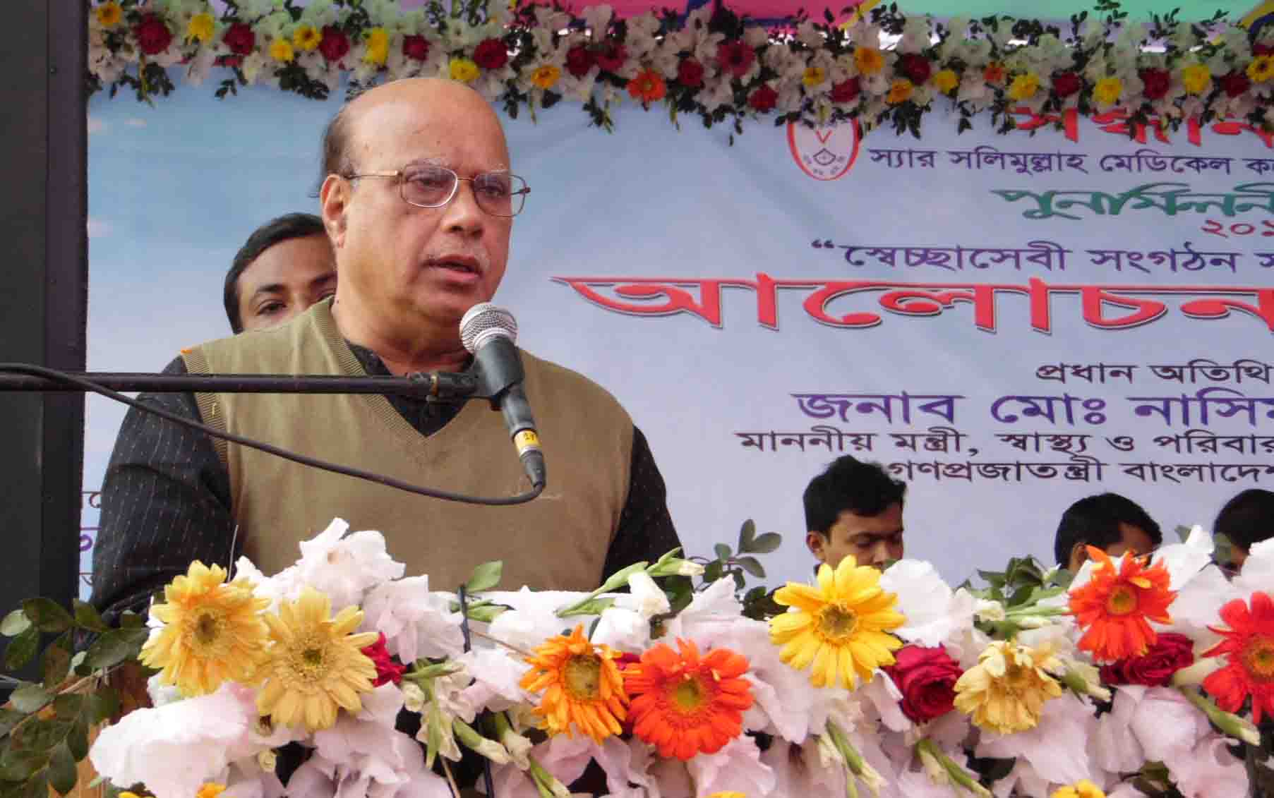 রাজধানীর স্যার সলিমুল্লাহ মেডিকেল কলেজ শাখা সন্ধানীর পুণর্মিলনী অনুষ্ঠানে মঙ্গলবার বিকাল ৩টায় প্রধান অতিথির বক্তব্যে তিনি এসব কথা বলেন।
