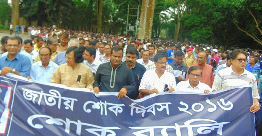এর আগে প্রায় দুই কিলোমিটার দীর্ঘ একটি শোক র‌্যালি রোববার সকাল দশটায় বিশ্ববিদ্যালয়ের প্রশাসন ভবনের সামনে থেকে শুরু হয়ে বিশ্ববিদ্যালয়ের বিভিন্ন সড়ক প্রদক্ষিণ শেষে সিনেট ভবনের সামনে এসে এ শোক সমাবেশে মিলিত হয়।