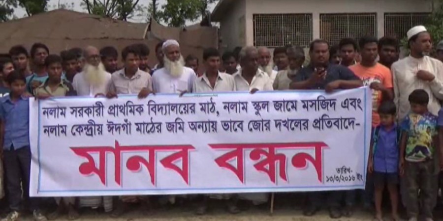 মানববন্ধনে বক্তারা অভিযোগ তুলেন ,একটি অসাধূ চক্র বেশ কিছু দিন ধরে ৭১ শতাংশ যায়গার উপর স্থাপিত নলাম সরকারী প্রাথমিক বিদ্যালয়, নলাম হাফিজিয়া মাদ্রাসা ও মসজিদের সামনের ১৬ সতাংশ যায়গা জোড় পূর্বক দখল করার পায়তারা করে আসছে।বিষয়টি আশুলিয়া থানা পুলিশকে জানানো হলেও কোন প্রতিকার মিলছে বলেও অভিযোগ তোলা হয় মানববন্ধনে।
