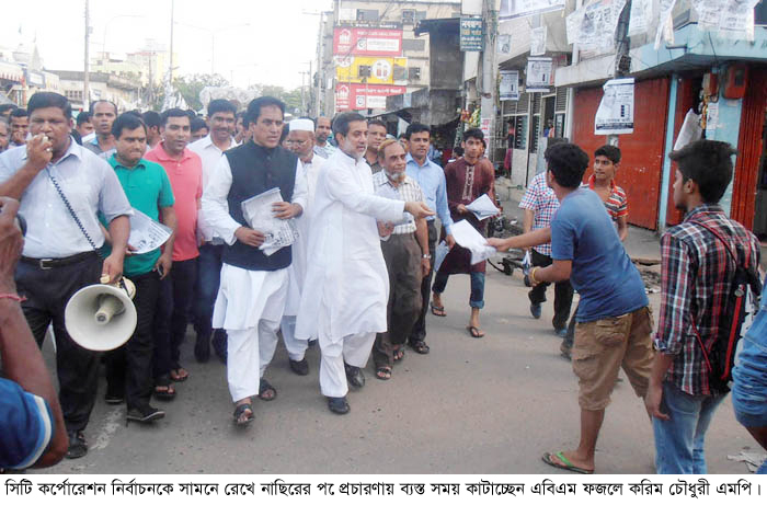 আ.জ.ম নাছিরের হাতি প্রতিকের ভোট চাইতে মাঠে নেমেছেন চট্টগ্রামের রাউজানের সাংসদ ও রেলপথ মন্ত্রণালয় বিষয়ক সংসদীয় স্থায়ী কমিটির সভাপতি এবিএম ফজলে করিম চৌধুরী এমপি। তিনি গতকাল নগরী মুরাদপুর, বহদ্দারহাট, চকবাজার, নিউমার্কেটসহ নগরীর বিভিন্ন গুরুরত্বপূর্ণ এলাকায় ভোটারদের কাছে গিয়ে আ.জ.ম. নাছিরের পে ভোট প্রার্থনা করেন।