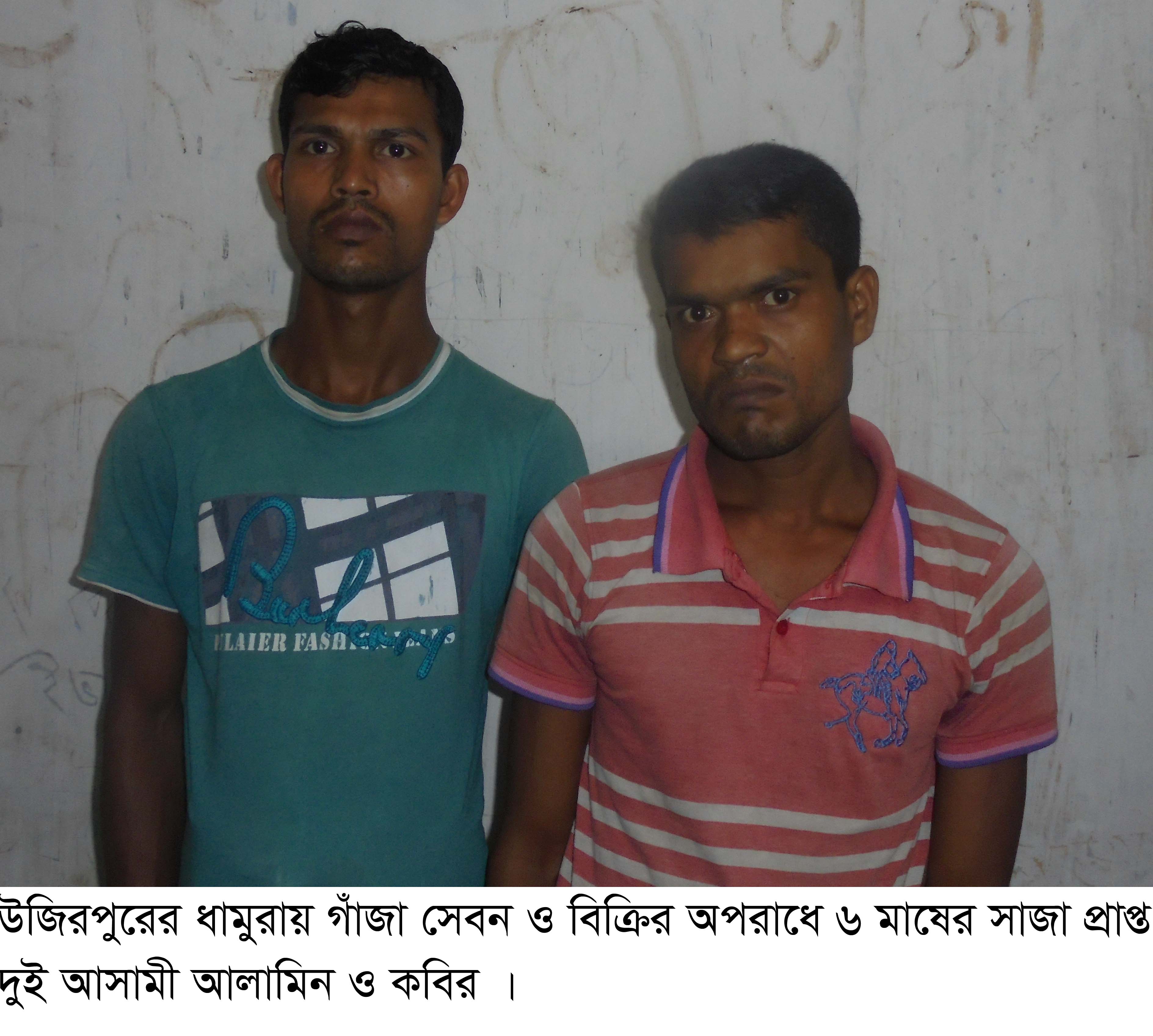 উজিরপুর মডেল থানার অফিসার ইনচার্য মোঃ নুরুল ইসলাম পিপিএম জানান মঙ্গলবার রাত ৮ টায় গোপন সংবাদের ভিত্বিতে উজিরপুরের ধামুড়া বন্দর থেকে দক্ষিন ধামুড়া গ্রামের ওছিমুদ্দিন হাওলাদারের ছেলে আলামিন হাওলাদার (৩০) ও মধ্য ধামুরা গ্রামের ছোবাহান হাওলাদারের ছেলে মোঃ কবির হাওরাদার (২৬) কে গাঁজা বিক্রির সময় তিনি সংগীয় ফোর্স সহ গ্রেফতার করে উজিরপুর উপজেলা ভ্রাম্যমান আদালতের বিচারকের নিকট সোপর্দ করেন।