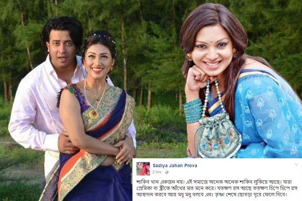 অভিনেত্রী সাদিয়া জাহান প্রভা সমালোচনা করে লিখেছেন, “শাকিব খান একজন নয়। এই সমাজে অনেক অনেক শাকিব লুকিয়ে আছে। যারা প্রেমিকা বা স্ত্রীকে আখের মতো মনে করে। যতক্ষণ রস আছে ততক্ষণ চিপে চিপে রস আস্বাদন করবে আর মধু মধু বলবে এবং তৃষ্ণা শেষে ছোবড়া দূরে ফেলে দিবে।”