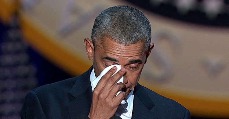 মার্কিন প্রেসিডেন্ট বারাক ওবামা আজ তার বিদায়ের ভাষণে মিশেল ওবামার কথা বলতে গিয়ে আবেগতাড়িত হয়ে পড়েন। এসময় তার চোখে পানি চলে আসে। এক পর্যায়ে ওবামা একটি সাদা রুমাল বের করে চোখের পানি মুছতে শুরু করেন। এ সময় তার মেয়ে মালিয়াকেও কাঁদতে দেখা যায়।