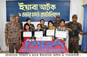 কক্সবাজারের টেকনাফে প্রায় ২০ হাজার পিচ ইয়াবাসহহ ৩ মহিলাসহ ৪জন আটক