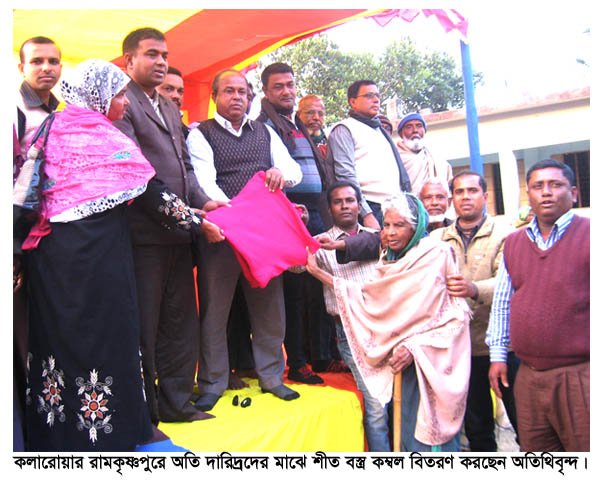 কলারোয়ার রামকৃষ্ণপুরে অতি দারিদ্রদের মাঝে শীত বস্ত্র কম্বল বিতরণ