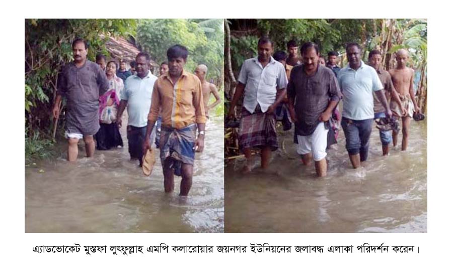 গতকাল দুপুরের ঝাঝালো রোদ উপেক্ষা করে তিনি পায়ে হেটে প্রতিটি জলাবদ্ধ এলাকা ঘুরে ঘুরে দেখেন। সাংসদ মুস্তফা লুৎফুল্লাহকে একা জলাবদ্ধ এলাকায় ঘুরতে দেখে গ্রামের নারী শিশুসহ সাধারন মানুষরাও তার পিছু নেয়। বয়ো বৃদ্ধরা বাড়ির ছেলে বা পাড়ার মানুষ মনে করে তাঁকে সঙ্গ দেন। এমপিকে কাছে পেয়ে ক্ষনিকের জন্য হলেও অনেকে ভূলে যান তাদের অভাব অনাটন বা কষ্টের কথা। এসময় সদা হাস্য উজ্জল জনদরদী এই মানুষটির জন্য অনেকেই দোয়া ও অর্শিবাদ করেন।