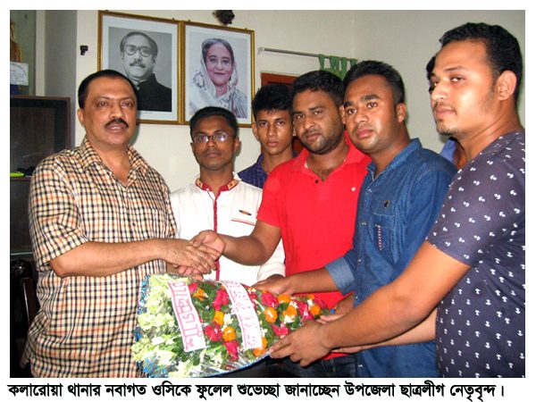 কলারোয়া উপজেলা ছাত্রলীগের পক্ষ থেকে নবাগত ওসিকে ফুলেল শুভেচ্ছা