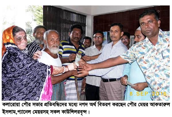 জুলফিকার আলী, কলারোয়া (সাতক্ষীরা) প্রতিনিধি: প্রতিবারের ন্যায় এবারও কলারোয়া পৌর সভার নিজস্ব তহবিল থেকে ৯টি ওয়ার্ডের প্রতিবন্ধিদের মধ্যে নগদ অর্থ বিতরণ করেছে পৌর মেয়র গাজী আকতারুল ইসলাম। বৃহস্পতিবার বিকালে পৌর ভবনে এ অর্থ বিতরণ করা হয়।
