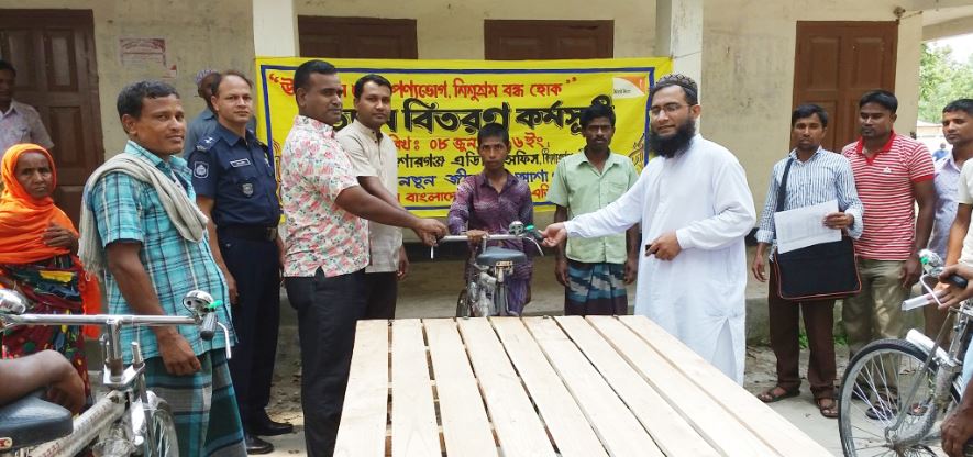 কিশোরগঞ্জে শিশুশ্রমের সাথে যুক্ত ৩০টি হতদরিদ্র পরিবারের মাঝে ভ্যান বিতরন