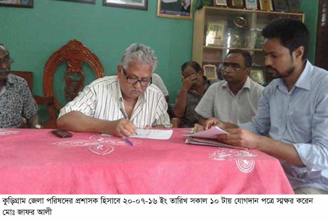 কুড়িগ্রামে জেলা পরিষদের প্রশাসক পদে মোঃ জাফর আলীর যোগদান
