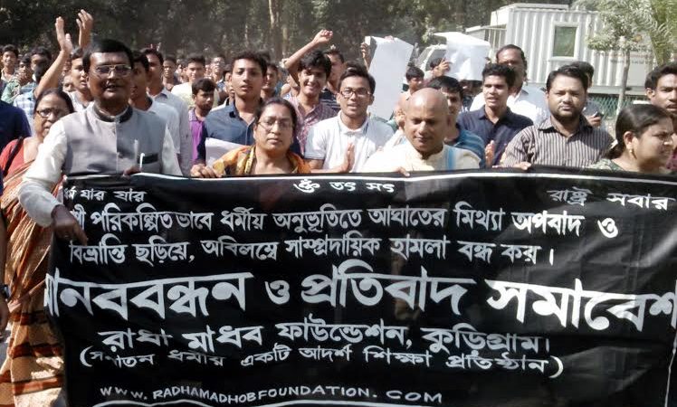 কুড়িগ্রামে রাধা মাধব ফাউন্ডেশনের বিক্ষোভ সমাবেশ
