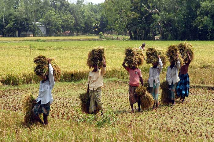 ধান মাড়াই কাজে ব্যস্ত কৃষক কিষানি
