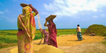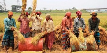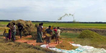 ধান মাড়াইয়ে ব্যস্ত বাংলার কৃষাণ পরিবার