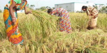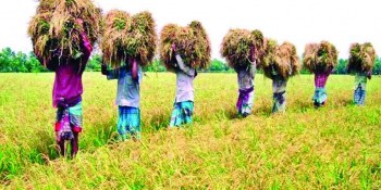 ধান কাটায় ব্যস্ত বাংলার কৃষাণ বধু
