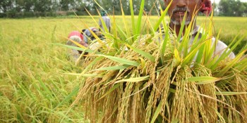 ধান হাতে দাঁড়িয়ে এক পল্লী কৃষক