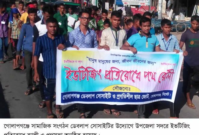 গোলাপগঞ্জ ডেভোলাপ সোসাইটি’র উদ্যোগে ইভটিজিং প্রতিরোধে পথসভা
