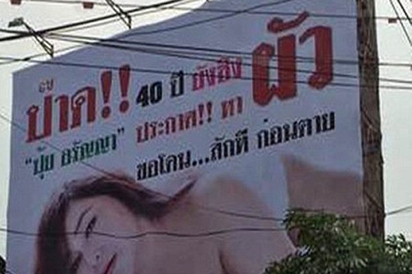 থাইল্যান্ডের জনপ্রিয় টিভি তারকা অরণ্য পুই পাথুমথং এখন খবরের শিরোনামে। ৪০ বছরে পা দিলেও শারীরিক সম্পর্কে জড়াননি তিনি। আর তাই মরিয়া হয়ে বিলবোর্ডে বিজ্ঞাপন দিয়ে সকলের নজর কেড়েছেন।