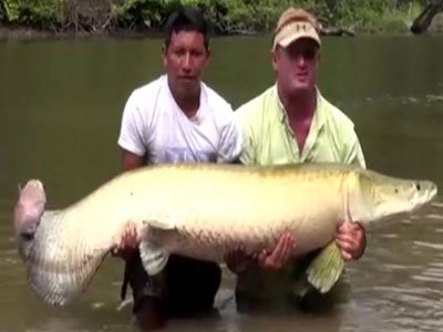 একেবারে ২০০ কেজি ওজনের একটি মাছ ছিপে ধরা পড়ল। মাছটির নাম ‘অ্যারাপাইমা’। এটি কেবল মাত্র আমাজনেই পাওয়া যায়।