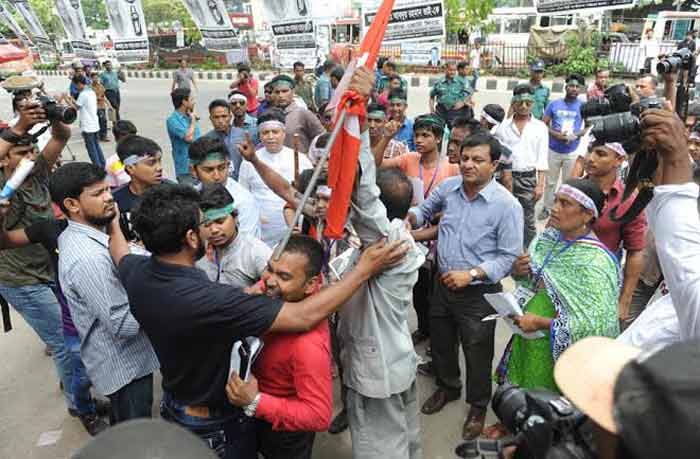 জাতীয় প্রেসক্লাবের সামনে জাতীয়তাবাদী সাংস্কৃতিক জোটের মানববন্ধনে হামলা চালিয়েছে মুক্তিযোদ্ধা প্রজন্ম লীগের নেতা-কর্মীরা।