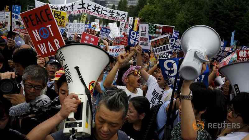 বিদেশে সেনা মোতায়েনের অনুমতি দিয়ে পাস হওয়া নতুন আইনের প্রতিবাদে জাপানে বিক্ষোভ করেছে কয়েক হাজার লোক। রোববার দেশটির জাতীয় সংসদের বাইরে এ বিক্ষোভ অনুষ্ঠিত হয়।