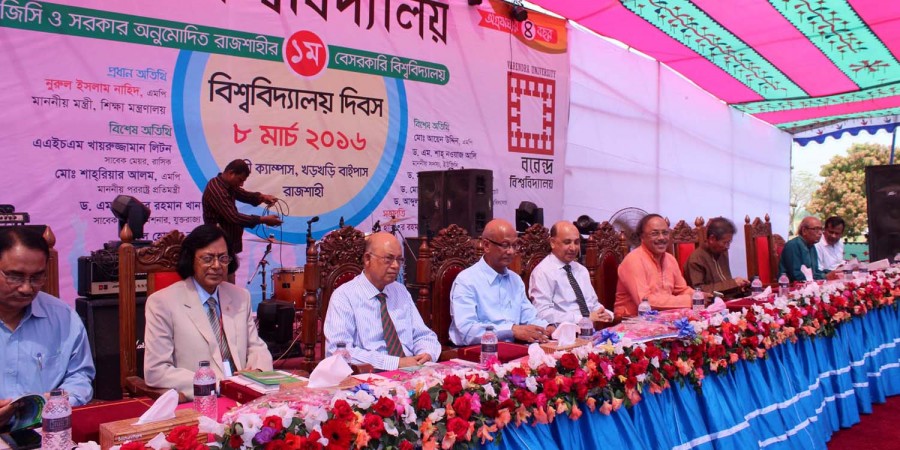 মঙ্গলবার দুপুরে রাজশাহীতে অবস্থিত বরেন্দ্র বিশ্ববিদ্যালয় দিবস উদযাপন অনুষ্ঠানে প্রধান অতিথির শিক্ষামন্ত্রী নুরুল ইসলাম নাহিদ এসব কথা বলেন। বিশ্ববিদ্যালয়ের চার বছরপূর্তিতে নগরীর খড়খড়ি বাইপাস সংলগ্ন স্থায়ী ক্যাম্পাসের জন্য নির্ধারিত স্থানে এ অনুষ্ঠানের আয়োজন করা হয়। এর আগে বেলা ১১টায় জাতীয় সঙ্গীতের মধ্যে দিয়ে জাতীয় ও বিশ্ববিদ্যালয়ের পতাকা উত্তোলন, পায়রা ও বেলুন উড়িয়ে অনুষ্ঠানের উদ্বোধন করেন শিক্ষামন্ত্রী।
