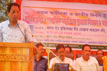 ৪৬তম মহান স্বাধীনতা ও জাতীয় দিবস উদযাপন উপলক্ষে ঝাউডাঙ্গা ডিগ্রি কলেজ আয়োজিত ৩ দিন ব্যাপি বার্ষিক ক্রীড়া ও সাংস্কৃতিক প্রতিযোগীতার পুরস্কার বিতরণ অনুষ্টানে প্রধান অতিথির বক্তৃতায় এসব কথা বলেন।