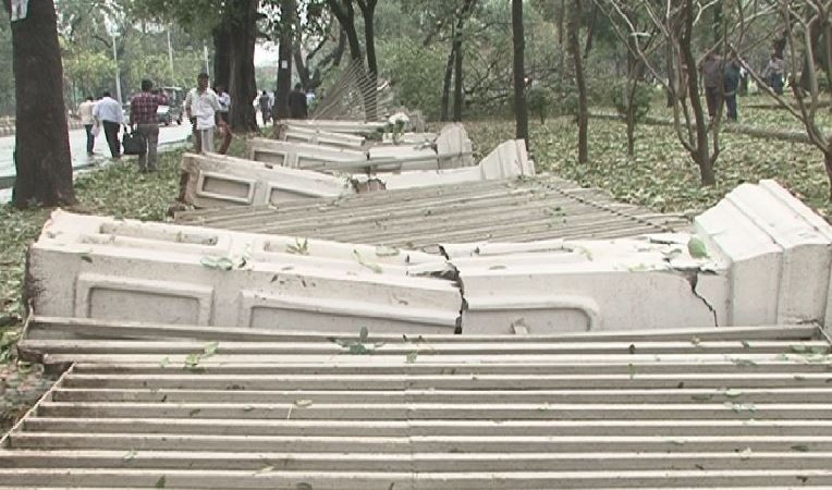 হঠাৎ ধমকা ঝড়ে ধ্বসে পড়ছে সুপ্রিম কোর্টের সীমানা প্রাচীর। বার কাউন্সিলের গেট থেকে সুপ্রিম কোর্টের মূলগেট পর্যন্ত সীমানা প্রাচীর ভেঙে যায়। তবে ঝড়ের সময় কেউ আহত হয়নি বলে জানা গেছে।