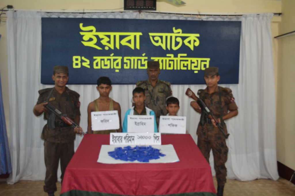 আটককৃতরা হলেন (১) মোঃ ফরিদ আলম (২০), পিতা- মোঃ জাফর আলম (২) মোঃ শরিফ আলম (১২), পিতা- মোঃ ইসহাক উভয়ের গ্রাম- নাজিরপাড়া, (৩) মোঃ ইব্রাহিম (১৩), পিতা- মোঃ আব্দুল মালেক, গ্রাম- শীলবুনিয়াপাড়া সকলের পোষ্ট- টেকনাফ, থানা- টেকনাফ, জেলা- কক্সবাজার। বিজিবির টহল দল গোপন সংবাদের মাধ্যমে জানতে পারে মায়ানমার হতে ইয়াবার একটি চালান নাফ নদী পাড় হয়ে টেকনাফস্থ নাজিরপাড়া বিএসপি পোষ্টের পশ্চিম পাশ দিয়ে বাংলাদেশে প্রবেশ করছে।